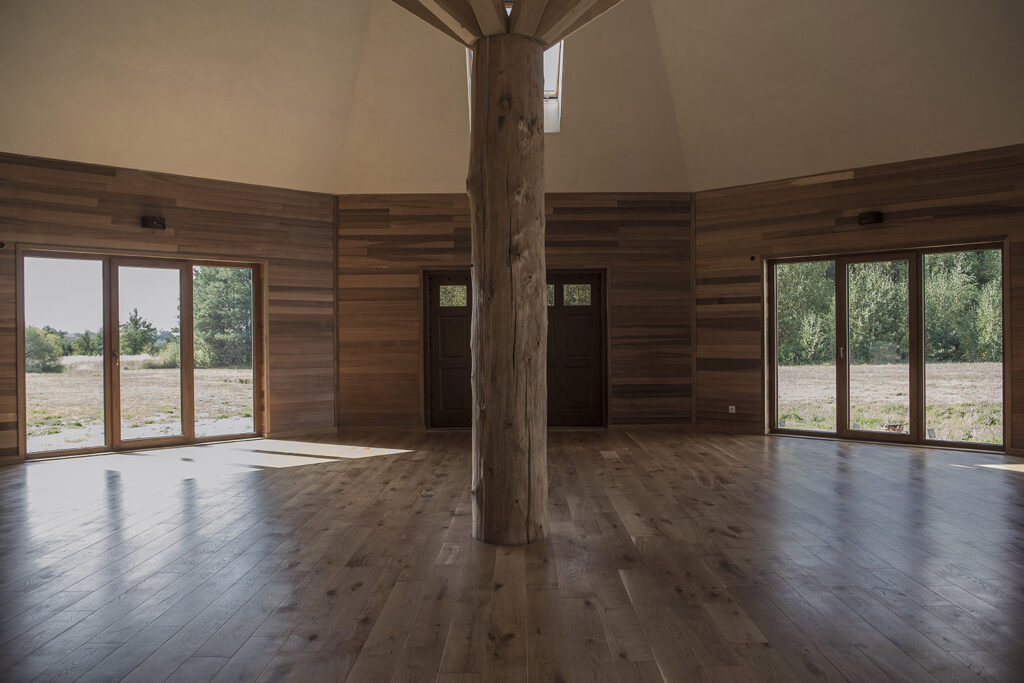 Wnętrza, wykonane z drewna i gliny, zostały zaprojektowane tak, by sprzyjały wyciszeniu, medytacji i oderwaniu od codzienności.