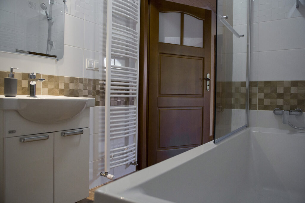 Mamy do dyspozycji 10 pokoi gościnnych 2, 3 i 4 -osobowych. Cztery z nich mają prywatne łazienki, a pozostałe korzystają z trzech wspólnych łazienek. Pokoje położone są na poddaszu, z oknami dachowymi i widokiem na las oraz łąkę.